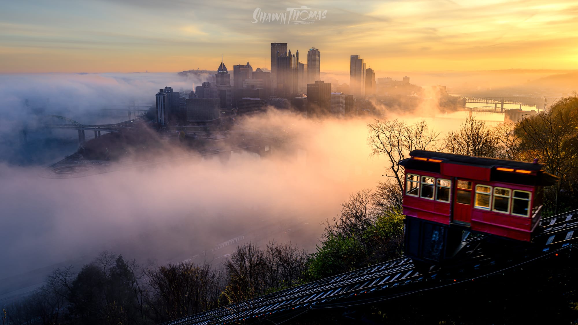The raw capture held incredible atmosphere with the fog rolling through the city, but it was flat and dark, with the incline car almost disappearing into shadow. My edits focused on revealing the scene’s natural drama without fabricating it. I lifted the fog so it had more glow and dimension, allowing it to wrap around the skyline instead of sitting as a heavy block of gray. The buildings were given just enough contrast to stand against the haze, while the sky’s warm tones were emphasized to balance the coolness of the mist. The incline car was carefully brightened so it became a key foreground anchor, giving the image both scale and story. None of these changes invented anything new—they simply brought forward the color, light, and mood that were already there but hidden in the raw file.