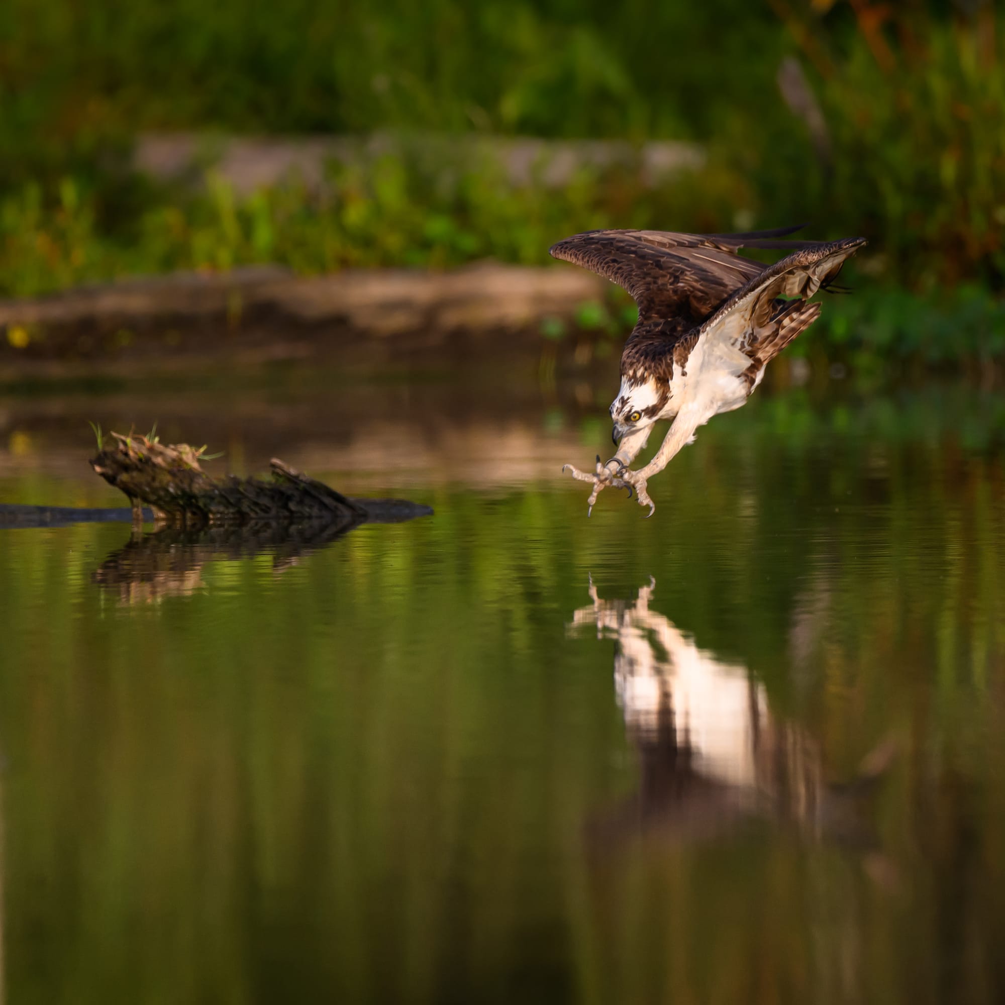 Osprey are another great example. They have a hunting pattern that, once you understand it, tells you almost exactly where to point your camera. When an osprey spots a fish it hovers. It adjusts. It tucks. Then it drops. If you're watching the hover you have a second or two to track, frame, and be ready for the dive. If you're just scanning the sky hoping to catch something you're always going to be a beat behind.