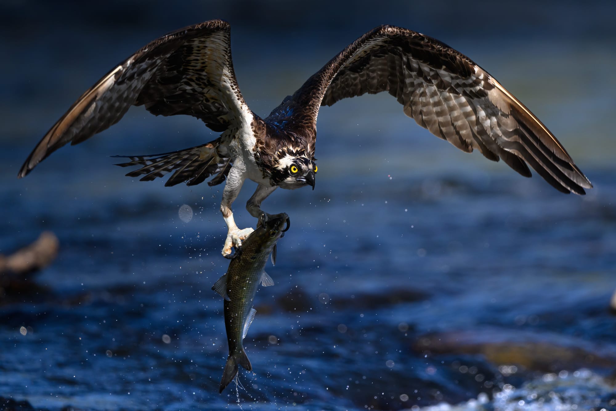 The fish in the talons shot, the one where you can see the water still dripping, the wings fully extended on the way back up — that doesn't happen by accident. It happens because you watched the bird work the water for ten minutes first and knew what was coming.